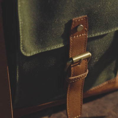 The bag is stitched using high-tensile, abrasion-resistant nylon thread, ensuring long-lasting structural integrity. Stress points are hand-reinforced with double stitching and bar tacking, while edges are hand-burnished for a clean, polished finish that speaks to artisanal attention to detail.